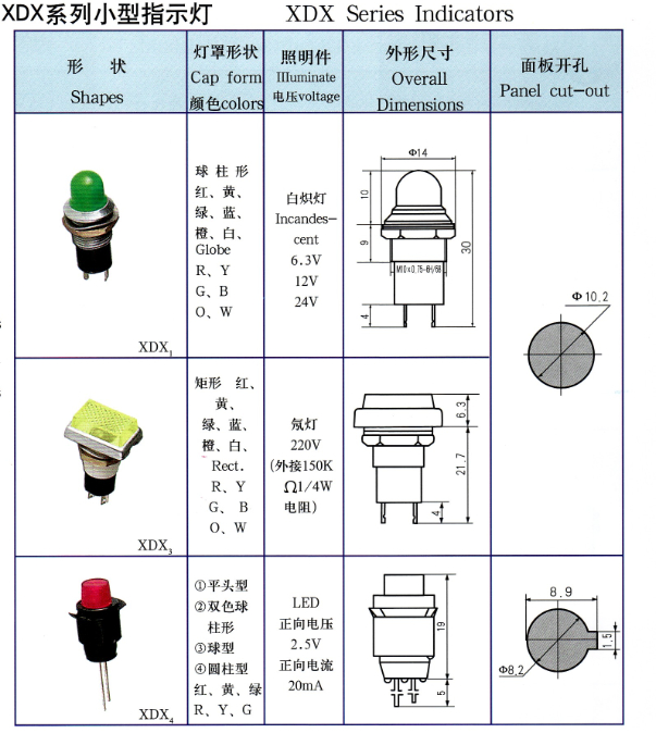 產(chǎn)品型號(hào):XDX系列小型指示燈